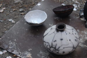 Para la decoración de las piezas utilizamos diversas técnicas: esmaltado, bruñido, texturas, terras sigilatas y también cocciones experimentales como rakú, pitfiring, reducción mediante humo etc.